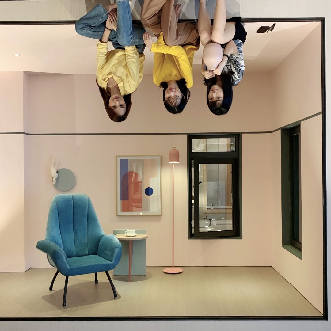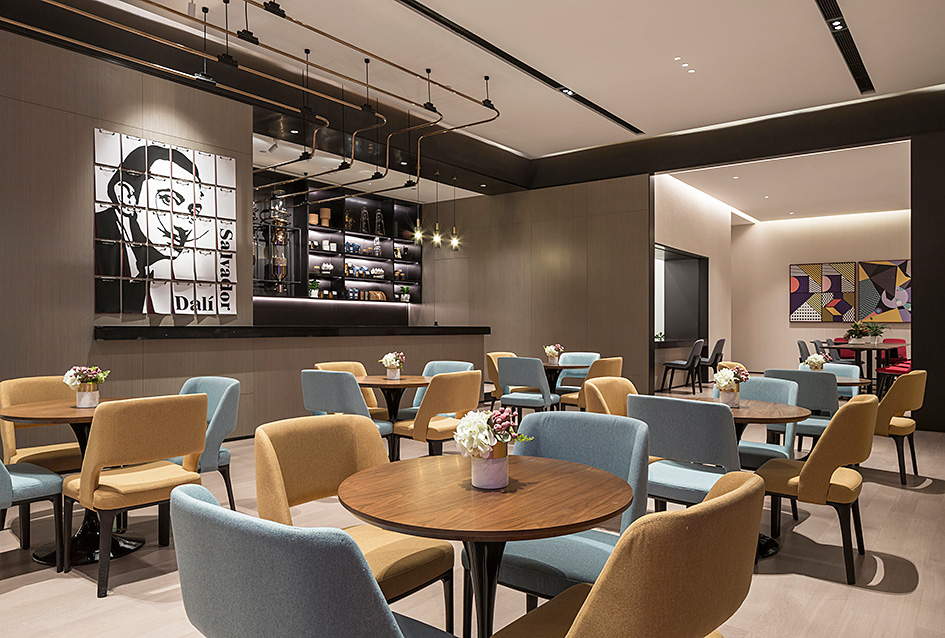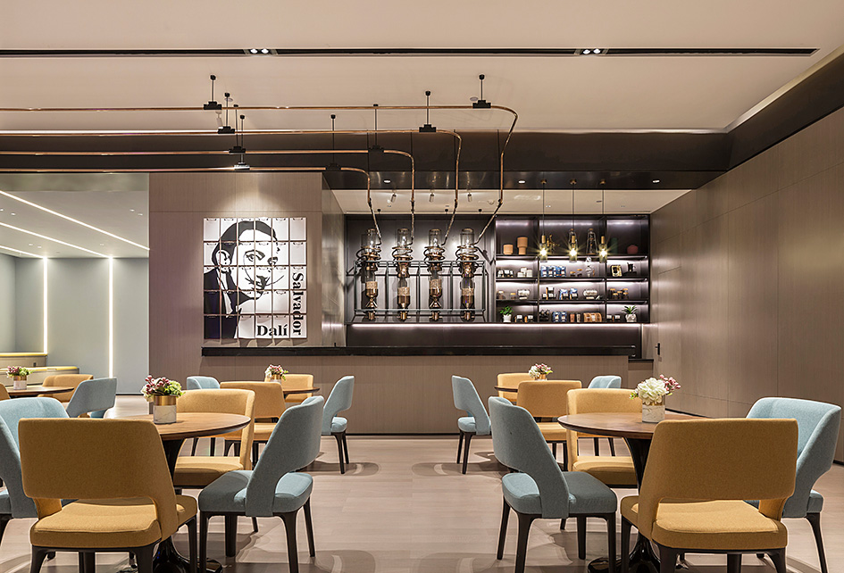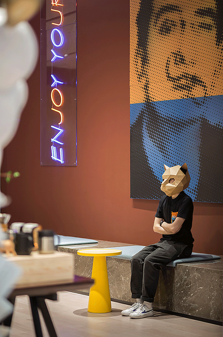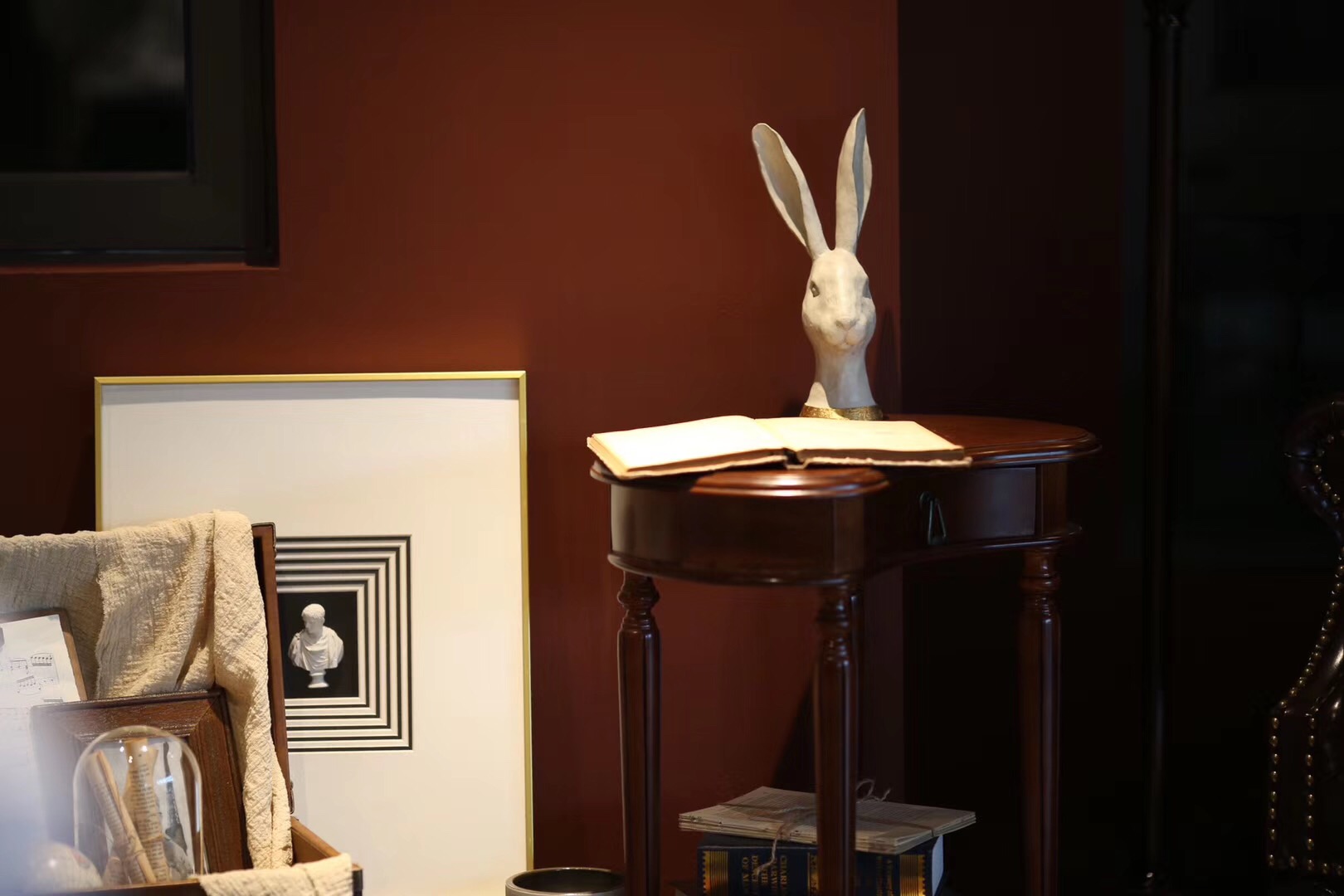 墙壁温暖的复古红色搭配Dali壁画的基调下