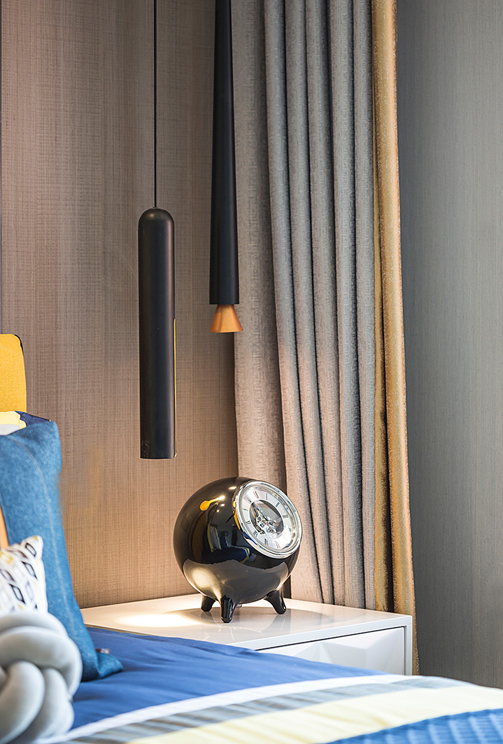 儿童房的设计是将实用与美感完美融合,蓝色与黄色的组合则使空间更具活力,体现出孩子的灵气活泼。