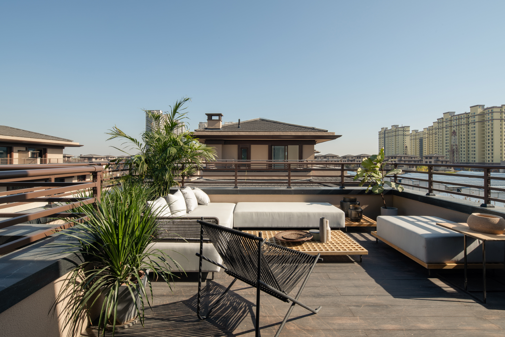 典雅的木色让庭院空间与室外风景产生一种容纳的和谐性,木头建材选取使空间整体沉浸在素雅气氛下,而热烈的阳光赋予了更多的活力和热情,风来雨去,云卷云舒,生活在这里被认真对待,生生不息。
