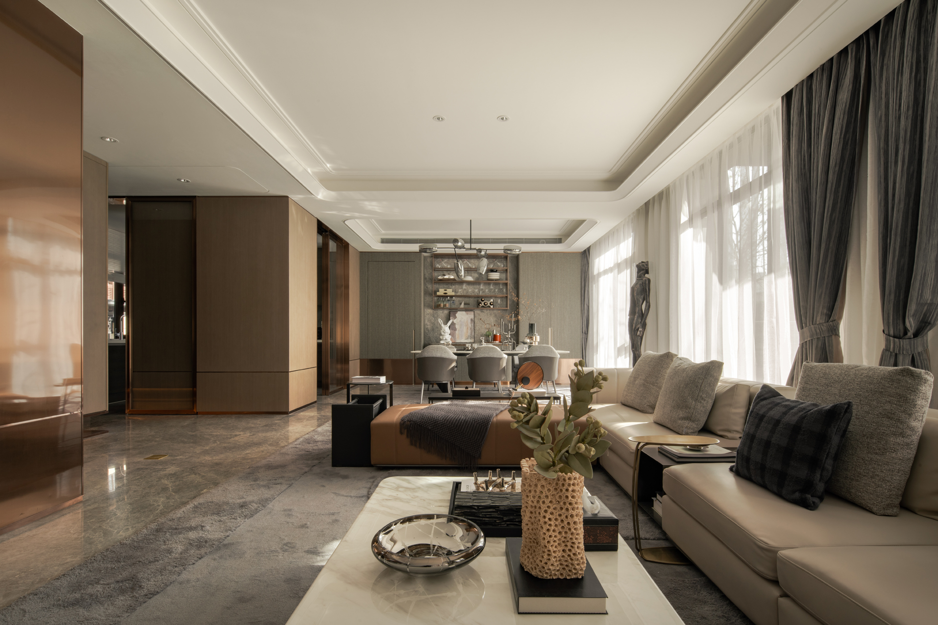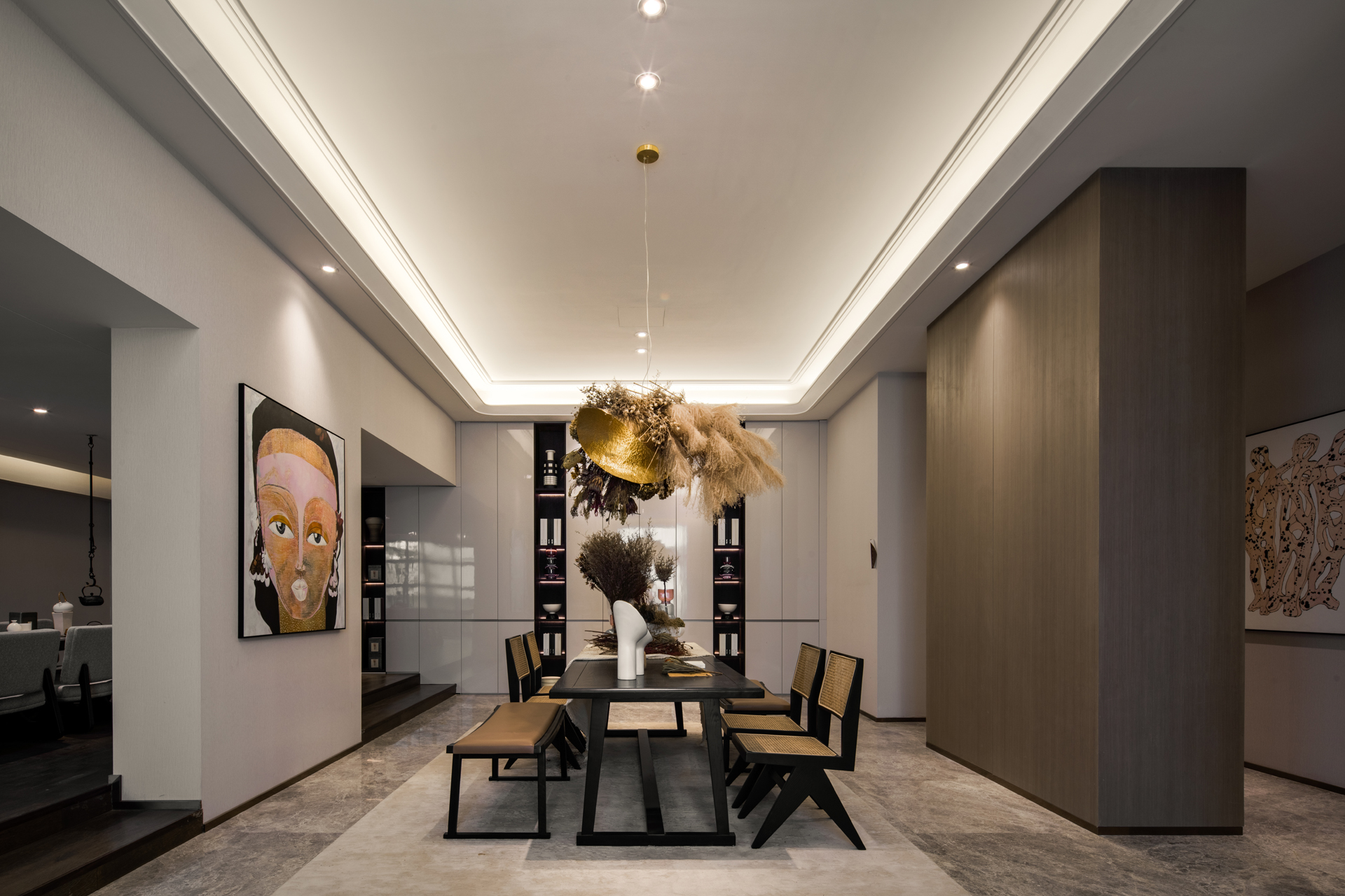 设计着重于控制空间的欣赏性、典雅与品味,在呈现精简线条的同时,又蕴含奢华感。通过异材质的搭配质感与层次,朝向更多对“人”的尊重,以此投射出主人的内心世界。