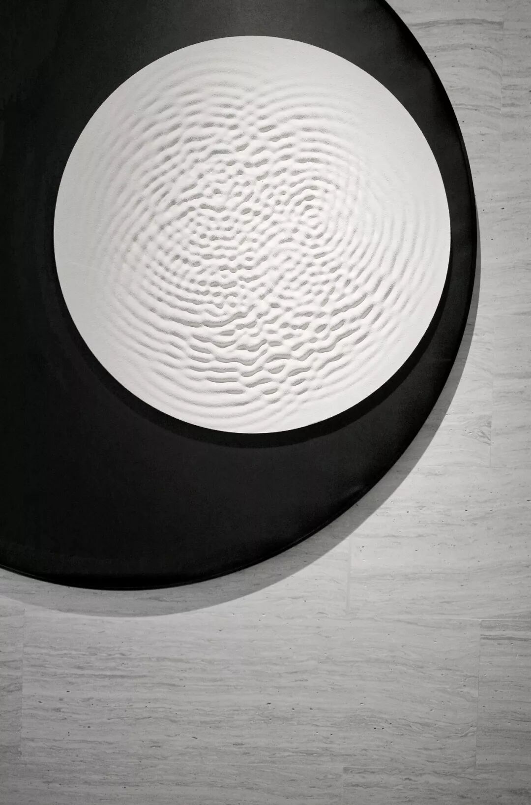 空间中引入大量艺术装饰品,将河马、猩猩、气球玩偶等具象的形态抽象化,趣味立显;而点缀其间的艺术挂画又以线条的无限重复形态呼应空间的几何语言,将水纹的无形具体化;光影哲学、视觉艺术与自由梦幻的思绪融汇于一体,凝练出极具韵律美感的现代艺术空间。